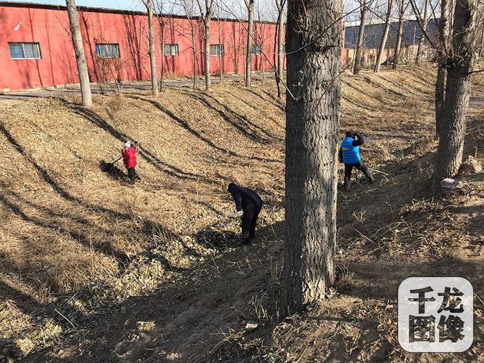 永乐河于家务段的河道内杂草丛生,冬季易发生火灾,富各庄村书记、村级河长王立全发现后上报这一隐患并组织清除。图为村民在清理杂草。千龙网记者 马文娟摄