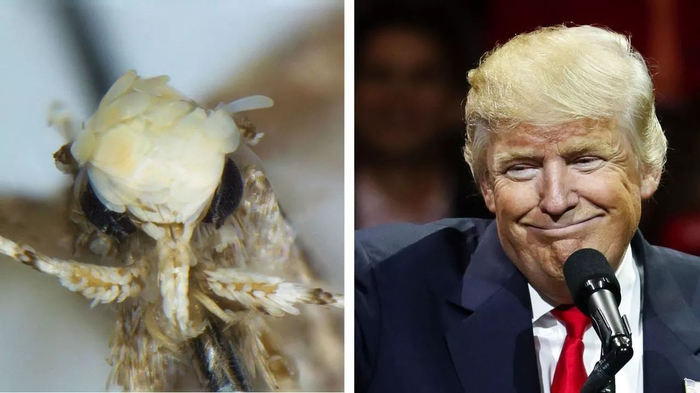 2017年1月,研究人员对科学期刊《生物钥匙》记者说,一种头顶呈黄白色的小蛾子以当选总统特朗普的名字命名,因为它有着与特朗普相似的发型。