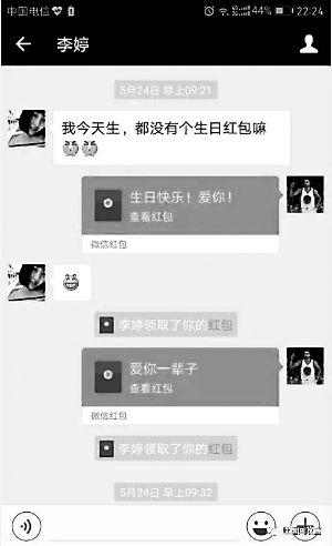 ↑小张和“李婷”认识没几天就赶上对方过生日,于是又发了生日红包。(图片源自网络)
