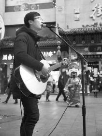 29岁的王学文,选择走上街头吟唱。他觉着自己有两个人生,白天上班挣钱养家,是“第一人生”;晚上上街唱歌,一半的打赏用来资助留守儿童,这是另外的一种生活方式,是“第二人生”。