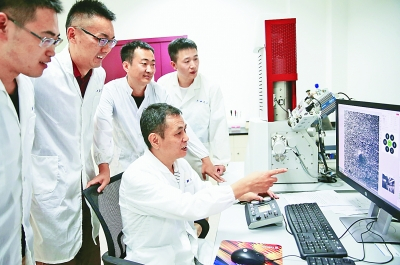 上海交大材料科学与工程学院的教授带领科研团队成员探讨学术。新华社发
