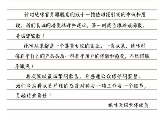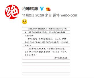 绝味在致歉信中表示: