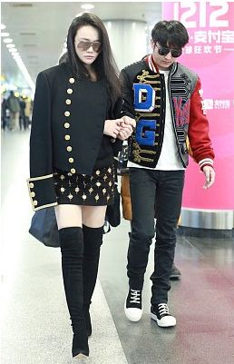 2017年12月21日,北京,明星夫妻现身北京机场。