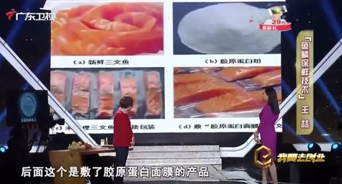 于是她就发明了“胶原蛋白可食膜”,在保证深海鱼新鲜度的基础上,可以让它的保鲜周期延长2-3天。