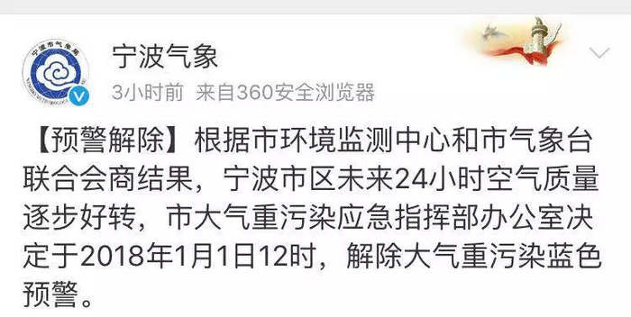 大气重污染蓝色预警解除!但据说宁波大规模雨雪天气要来了?