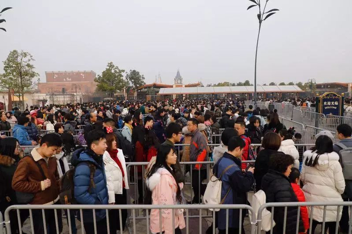 上午8时,2017年最后一天申城的天色并不明朗,但上海迪士尼乐园门口排起的长队已近百米长。根据相关数据预测,整个国际旅游度假区客流预计将达10万。