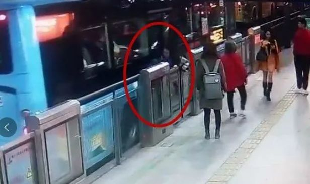 视频显示,刘小姐刚一脚踏下公交车时,她身前的车站屏蔽门和身后的公交车门同时关闭,关上门的B3公交车更随即开动,一只脚仍被车门夹住的刘小姐被公交车拖着摔倒在车道上……