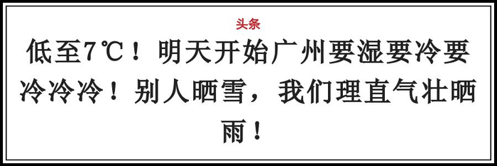 低至7℃!明天开始广州要湿要冷要冷冷冷!别人晒雪,我们理直气壮晒雨!