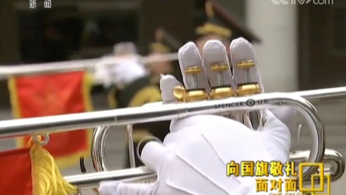 在升旗现场,对“向国旗敬礼”口令感受格外深刻的还有解放军军乐团副团长兼指挥张海峰。按照程序,“向国旗敬礼”口令下达之后,升旗手按下升旗按钮,同时张海峰开始指挥军乐团演奏国歌,这样才能确保国旗在46秒国歌演奏的时间内成功升起。