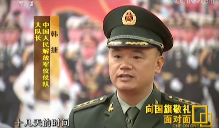 升旗当天,在现场负责指挥的解放军仪仗队大队长韩捷充满自信。然而,事实上,在之前举行的两次实地演练过程中,并非没有任何问题。