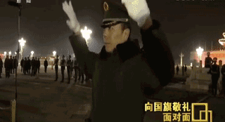 升国旗时,乐队面向天安门,我面向乐队,升旗手和仪仗队执行队长面向天安门,他们都背对着我。2017年12月28日凌晨预演,我说我打3拍起,就是口令“敬礼——”123起,但是等2017年12月30日再预演的时候,就发现不行。