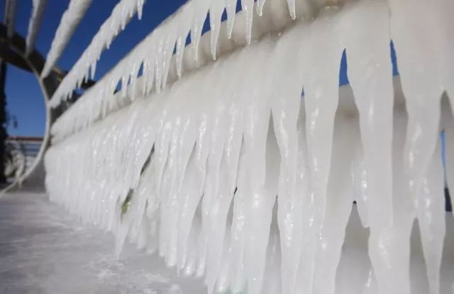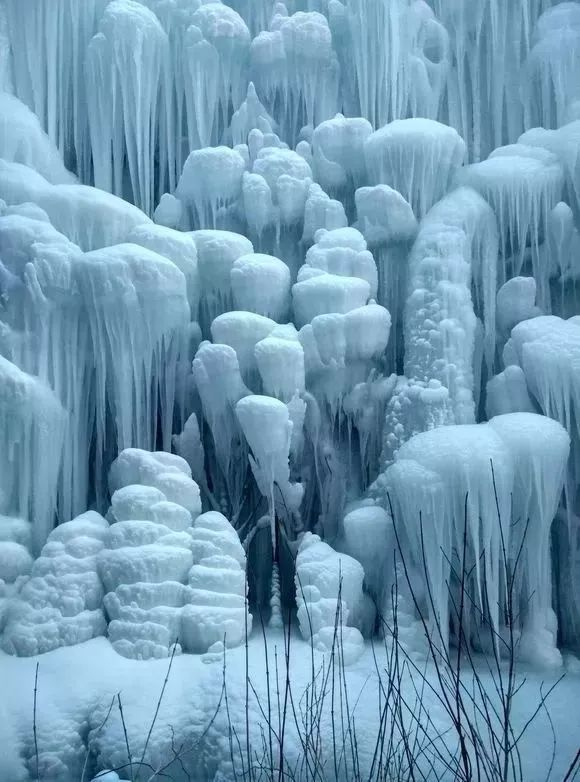 有些地方因冰挂不断加厚从而变成了 " 冰墙 "