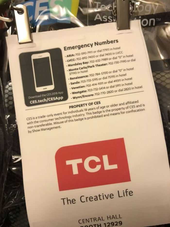 所有人都知道TCL,进出CES的证件背面就是它,让人错以为乱入了家电展。