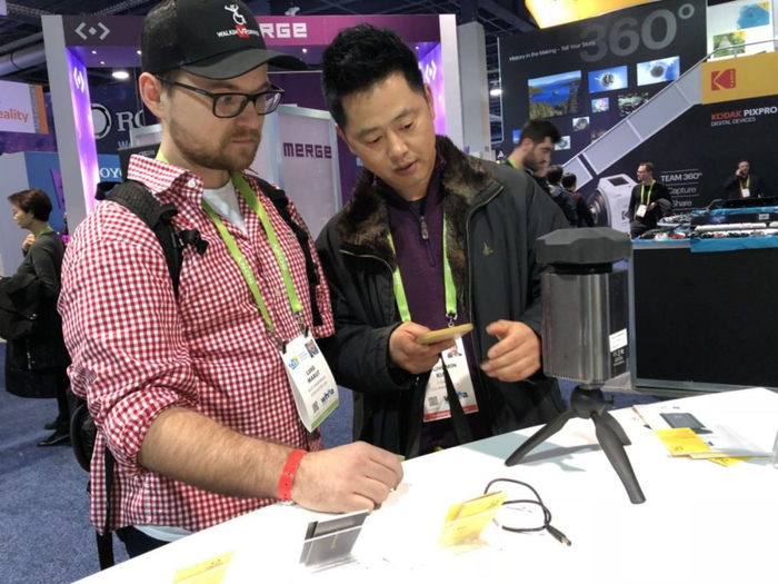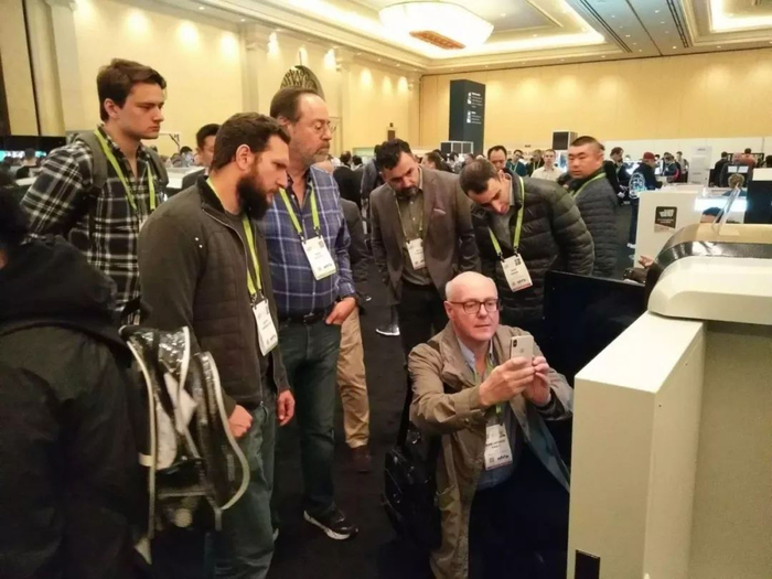 2018年美国消费电子展(CES)正在拉斯维加斯火热进行。展会上,一位外国发烧友对中国的展品技术特别着迷,跪地一拍。