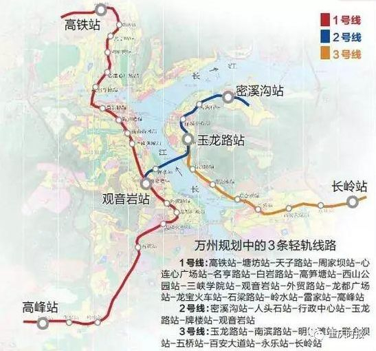 未来万州的公交服务体系将以轨道交通为骨架,万州城区交通2018-2020年远期规划中,要建3条轻轨线,即万州轨道交通1、2、3号线。