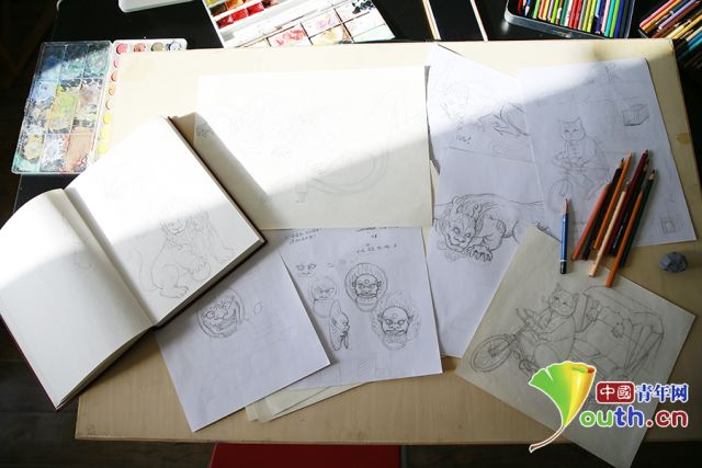 除了“后海八爷”的工作,王雪宜还有一个绘画工作室,平时会在工作室内进行创作,做一些绘画教学,将老北京文化的元素融入创作当中。