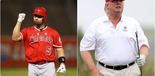 按照体检数据,特朗普(右)的身高、体重与棒球运动员阿尔伯特·普侯斯基本一致。(英国《太阳报》网站)
