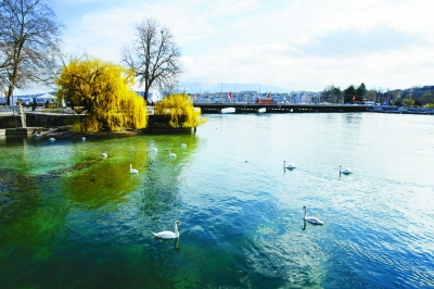 今天,瑞士各地的湖泊,水色清澈,很多地方可以直视湖底。在各自指定的区域里,泳客挥臂畅游,钓鱼者悠闲垂钓,风帆或其他水上运动爱好者各展所能。加上各种水面、水下动植物茁壮成长,湖上风光优美多样,人与自然高度和谐,绿水青山成为瑞士的“名片”。