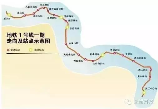 再来看看东莞地铁一号线。根据《东莞市综合交通运输体系发展“十三五”规划》,东莞地铁一号线将分三期进行建设,共设置21个站。
