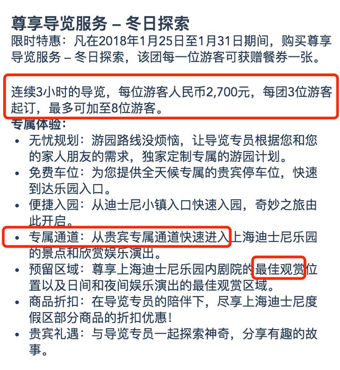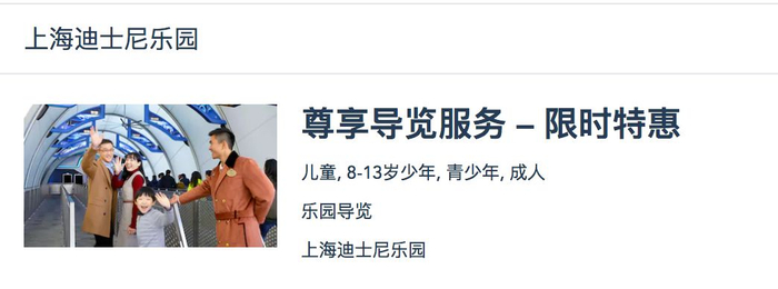登陆上海迪士尼的官网,通过在非常不明显的导览服务专区里,的确搜索到了这项服务,虽然大部分游客不知道迪士尼还有这项服务,也就是说,确实存在VIP团: