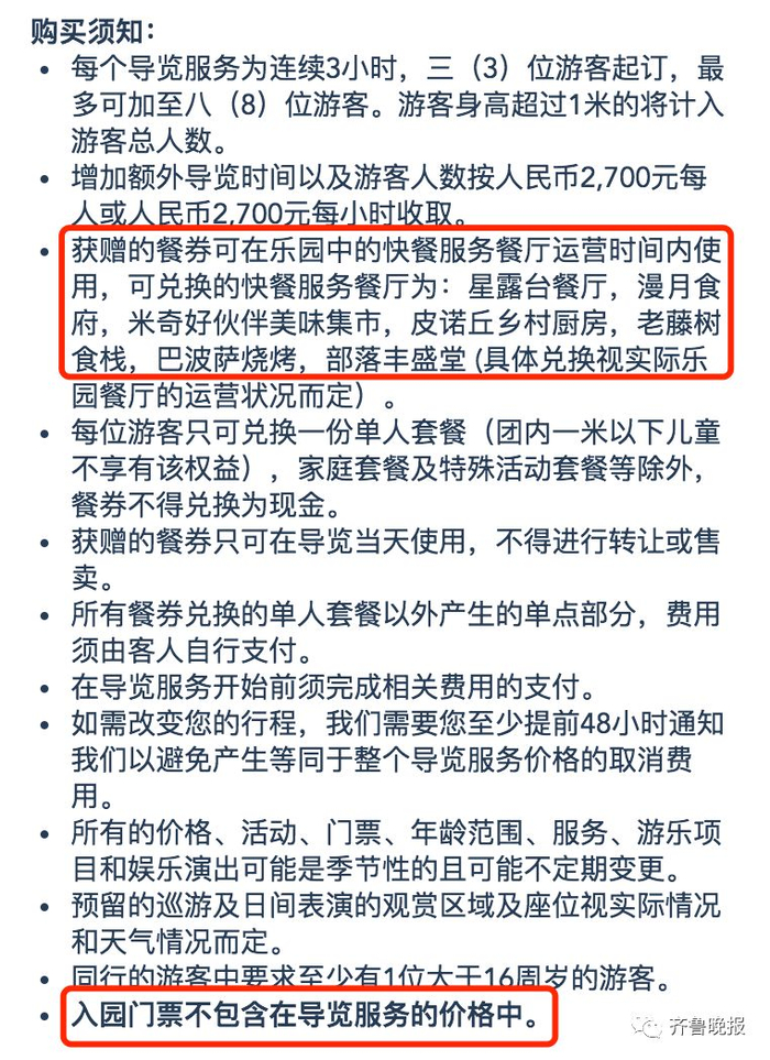29日,上海迪士尼乐园方面予以澄清,称所谓的“天价插队费”实则迪士尼乐园的“尊享导览服务”。该项服务在上海迪士尼乐园开园时就已推出,且并非中国乐园首创,在全球其他乐园均可见到该服务项目。