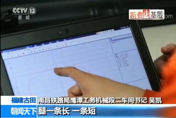 万文超:我们会利用激光把钢轨的整个外表测一遍,跟设计廓形进行对比,就知道哪个位置要打得狠,哪个位置要打得轻。
