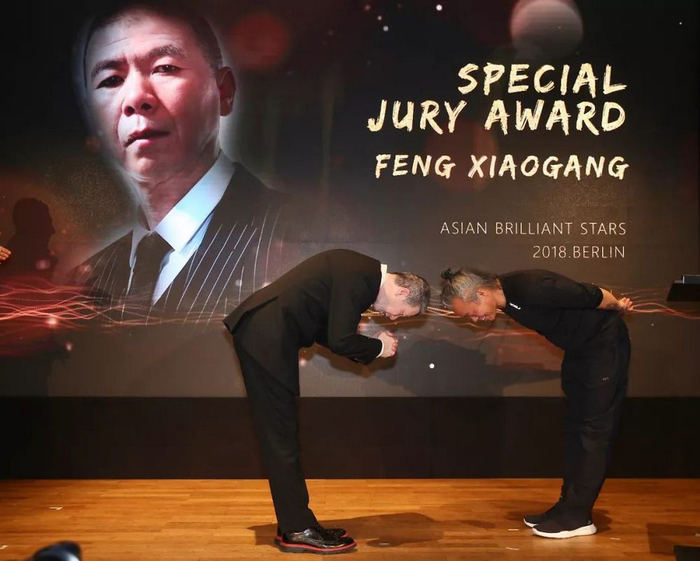 评委之一韩国导演金基德给冯小刚颁奖时,冯小刚先弯下腰来,与此同时,金基德也俯身鞠躬——