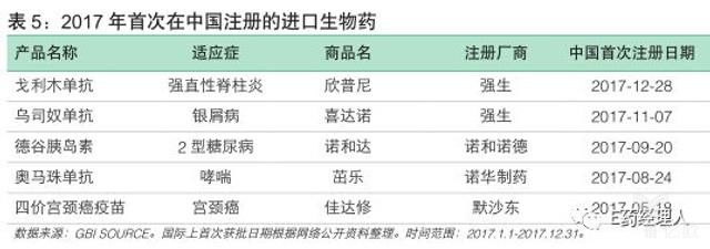 与化药相比,生物药起步较晚,中国市场上的生物药主要以进口药为主。GBISOURCE数据显示,2008~2016年间,共有20款进口生物药在国内获批上市,2017年,有5个进口生物药首次在中国获批,数量亦达到了近十年来的最高值。