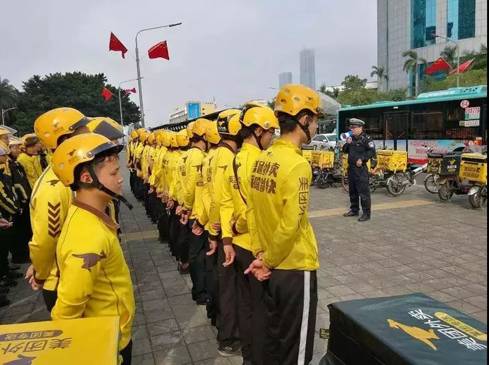而加盟及承包经营商的骑手大多管理不善,无具体骑手管理机制,工服不统一、不戴头盔,特别是承包经营模式可同时接受各个平台的单实施配送,存在较大的交通安全隐患;