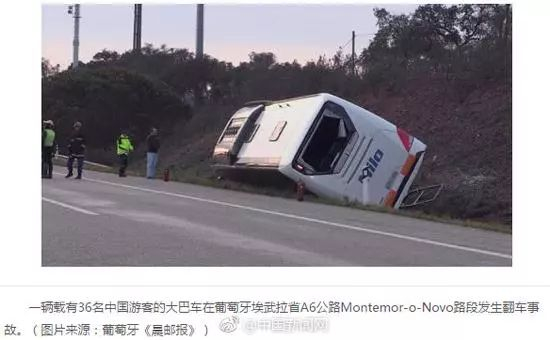 当地时间3月22日下午17时,一辆载有37人的大巴车在葡萄牙埃武拉省A6公路Montemor-o-Novo路段发生翻车事故,据当地民防和急救部门称,事故发生时车上有36名中国籍游客和1名西班牙籍司机。目前,事故已造成26人不同程度受伤,伤者已被送至埃武拉医院接受治疗。其他未受伤人员被送到附近的Vendas Novas服务区,由旅游公司派车接走。