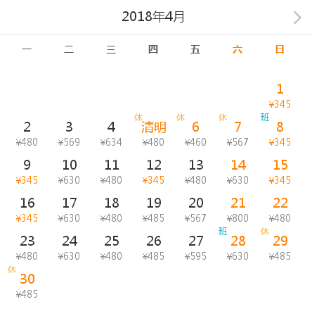 一般周一/二/日的机票有较低的折扣