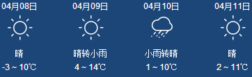 最低气温-3 ℃,最高气温 10℃