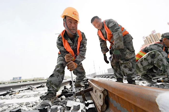 现场除了有近百人的铺路工人外,还有一批技术人员、监理、管理者在忙碌着,优质高效管理协作下,铺轨工程正快速地向前推。清明小长假期间,银西高铁轨道工程现场还能看这支铺轨大军人们忙碌的身影,他们没有休息。工程建设者们牺牲“小家”,幸福“大家”,奋战在自己的岗位上全力推进工程建设。
