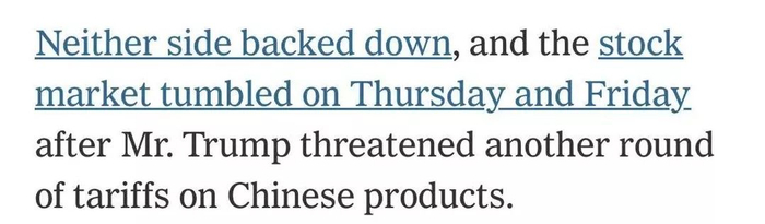 《纽约时报》随后报道,表示,猜不透,难道总统的意思是,在解决世界两个最大经济体的贸易争端问题上取得了进展。