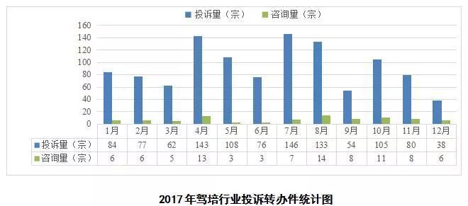 2017年度,市港航货运局共受理驾培行业投诉转办件1196宗,同比2016年(1641宗)下降27%,其中市交通运输委信息服务中心转办件1091宗、市信访局转办件6宗、上访投诉9宗及咨询件90宗。投诉内容主要集中在退学退费、驾校综合服务、培训排期服务等方面。