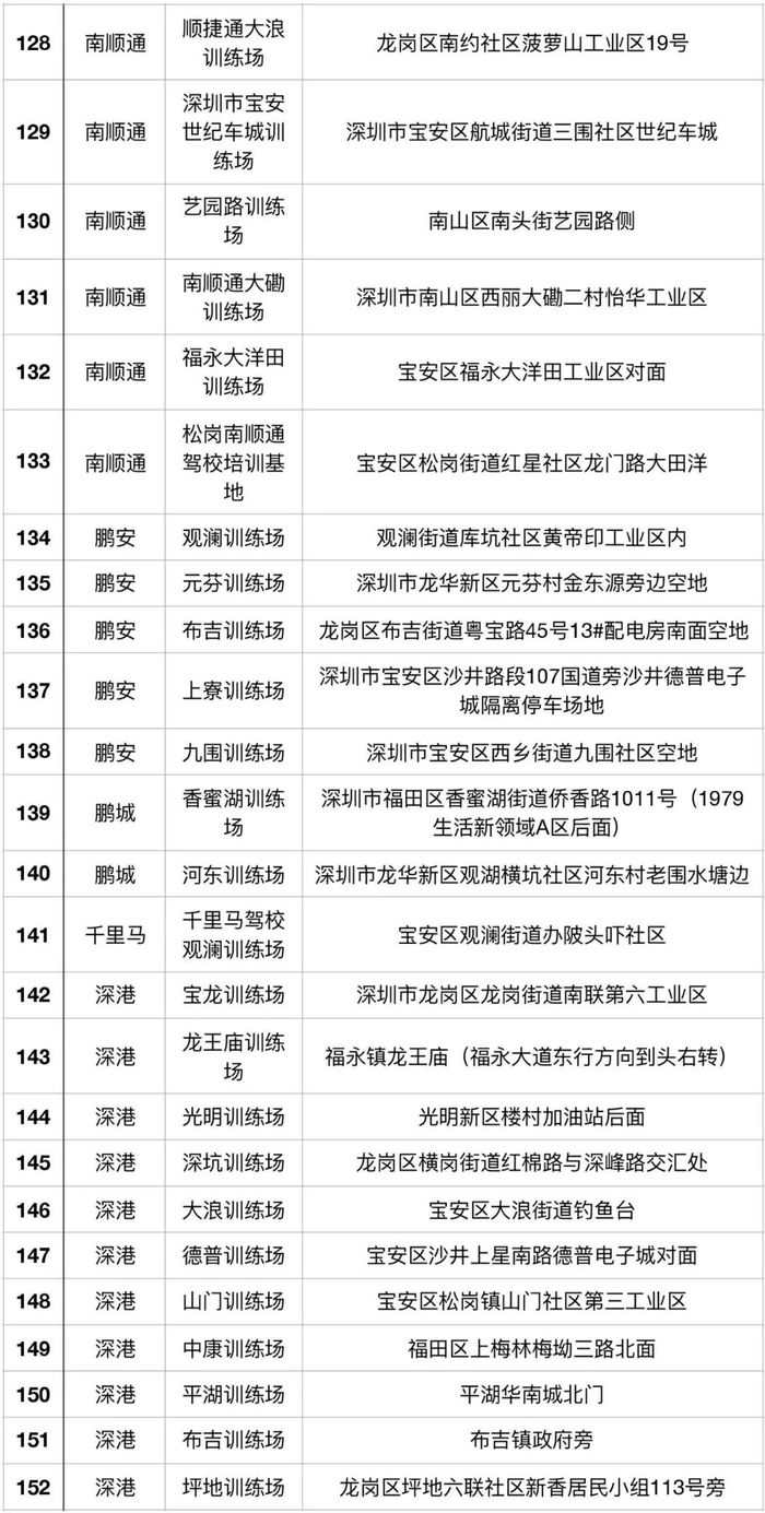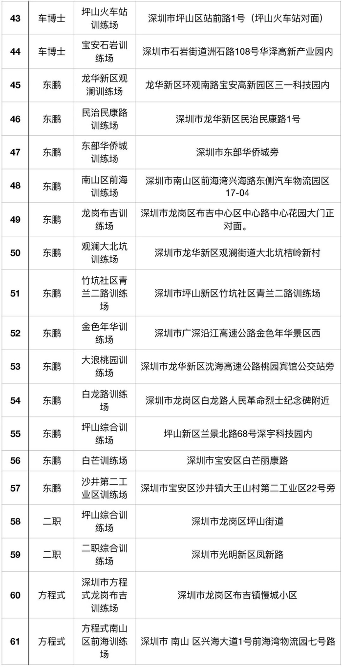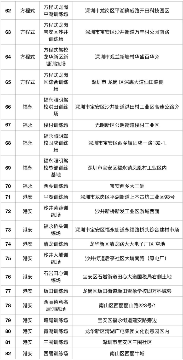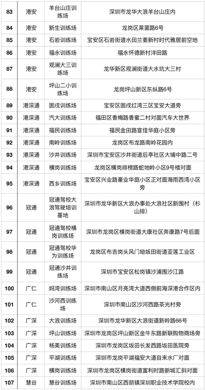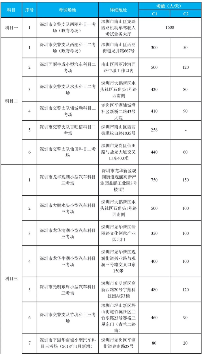 (注:考场详细信息可通过关注“深圳驾培”微信公众号进行查询)