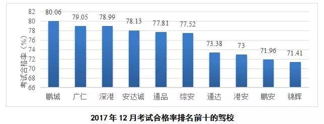 考试总合格率前十名的驾校为鹏城、广仁、深港、安达诚、通品、综安、通达、港安、鹏安、锦辉。