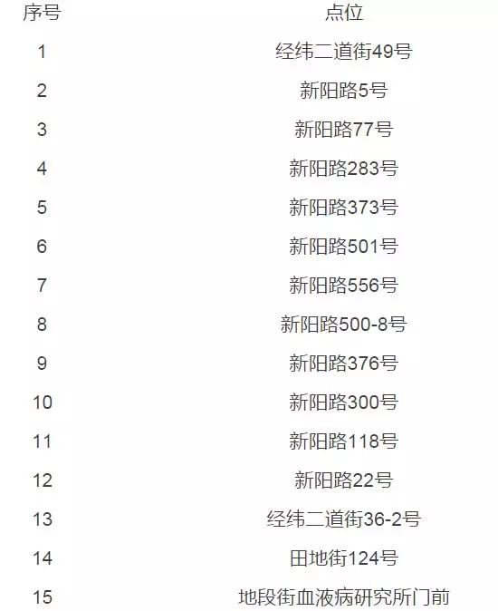急救急患临时停靠点明细表
