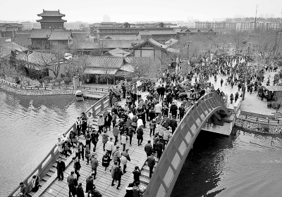 市民游客在河南省开封市龙亭景区参观游览。新华社发