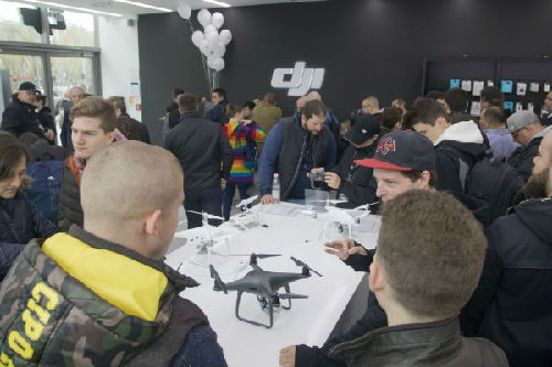 资料图片:4月7日,匈牙利首都布达佩斯,顾客在大疆授权零售店内。当日,中国无人机厂商大疆在匈牙利的首家授权零售店开业。(新华社)