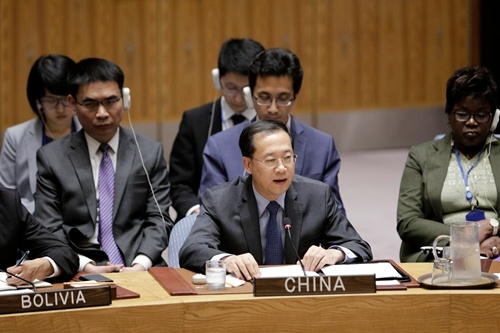 中国常驻联合国代表马朝旭大使在安理会访问孟加拉国和缅甸通报会上发言。