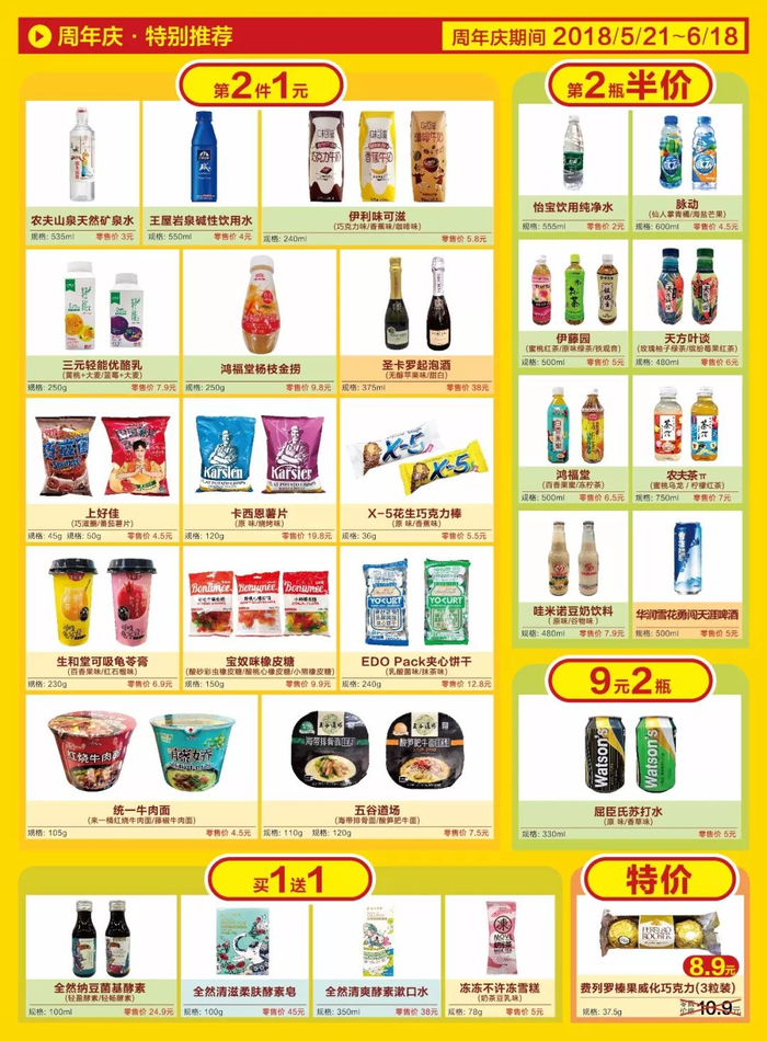 更多优惠商品第二件一元、第二件半价尽在会有便利 周年庆5月21日-6月18日开往会有的美食专列全力开动!!!*点击可放大查看