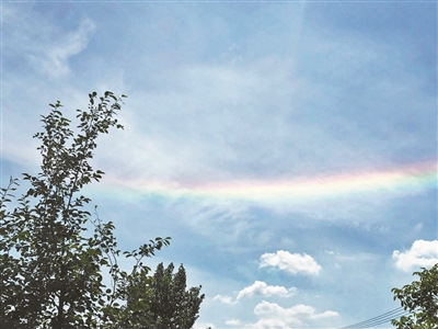 昨天,不少北京市民拍到了天空出现“七彩云”和“日晕”的现象。正值高考第二天,不少网友认为这预示着“好运”“吉祥”。北京青年报记者从气象专家处获悉,七彩云和日晕其实是常见的大气光学现象,原理是云中冰晶对阳光的折射和反射造成,但专家表示,北京昨天是多云天气,需要在合适的条件下才可能出现日晕。