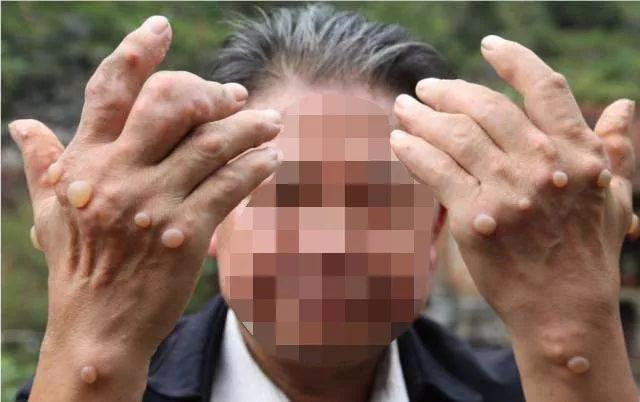 20年过去了,70公斤的体重变成了50公斤,面黄肌瘦,皮包骨头;全身长出了一个个会痛的包块,大的如乒乓球,手上脚上到处都是,隔一阵就肿痛发作,疼得撕心裂肺。最近两年,老杜的手脚开始溃烂。老杜突然觉得应该去治疗了,后来走了很多地方,医生都告诉他基本上治不了了,后来在老邻居的介绍下他来到了南京同仁堂。