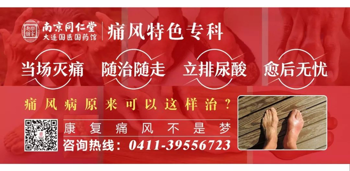 南京同仁堂大连国医国药馆痛风专科独创灭痛排酸疗法:痛风三针+一罐分分钟灭痛;针对痛风患者不同情况辨证分型,开具方剂,短时间内解决痛风——降低血尿酸、调和五脏、恢复人体代谢功能。