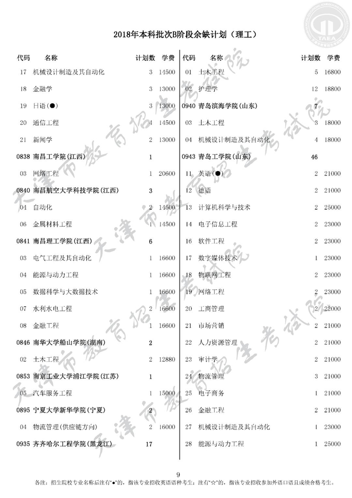 我市普通本科批次(含A、B阶段)按照招生计划数的100%划定录取控制分数线。由于本科批次A阶段及以前批次累计已增加计划1700余个,且部分上线考生鉴于本科批次B阶段的院校性质和收费等原因放弃填报该阶段院校志愿,因此,本科批次B阶段院校的档案充足率不高。文史类194所院校中,120所不足;理工类207所院校中,107所不足。目前,本科批次B阶段院校尚有233所次3051个计划需经征询进行录取。其中文史类尚有123所招生院校,剩余计划1240个;理工类尚有110所招生院校,剩余计划1811个。