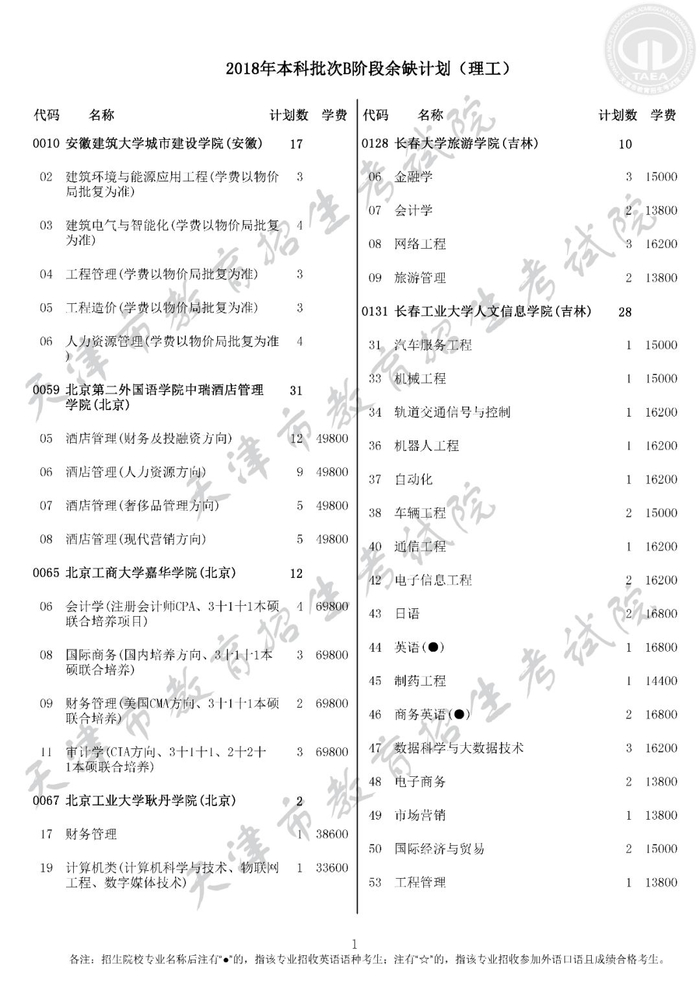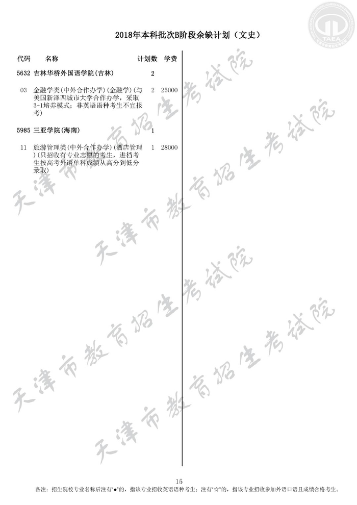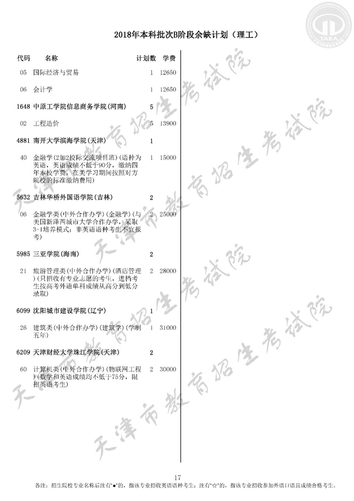 记者从市教育招生考试院获悉:天津市2018年普通高校招生本科批次B阶段录取工作已基本结束,共有208所院校参加录取,截止目前共录取新生6161人,增加计划335个。7月27日上午9时起,考生可以通过登录招生院校网站或招考资讯网(www.zhaokao.net)查询本科批次B阶段院校的录取结果。根据本市普通高校招生工作规定,本科批次B阶段院校志愿录取结束后,市高招办将公布尚有剩余计划的院校和招生计划数,面向未被录取的考生征询志愿。