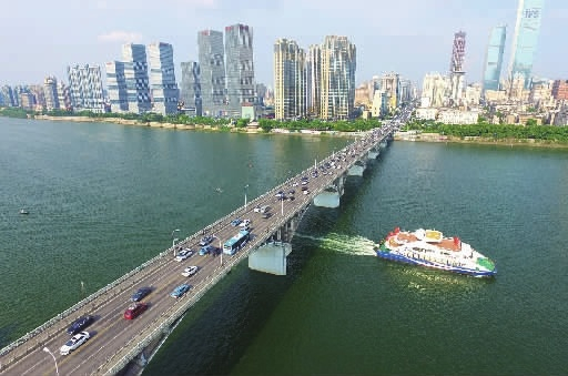7月27日下午,一艘游艇从长沙市橘子洲大桥下穿过。该桥提质改造工程已于近日启动施工,下月5日起将对大桥占道施工并采取一定交通管制措施,预计9月30日前完成提质改造。记者 田超 摄
