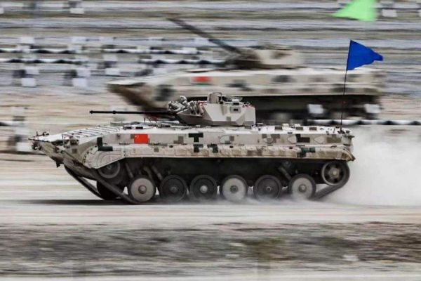 图为使用86A步兵战车参加国际军事比赛的中国和白俄罗斯代表队
