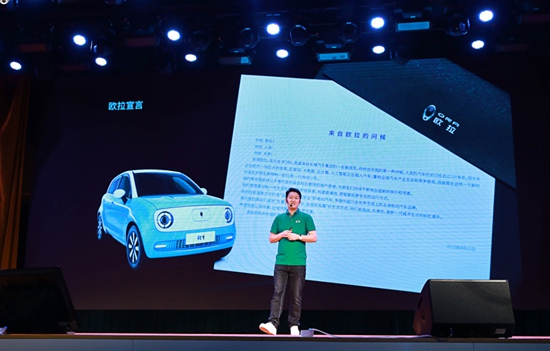 长城汽车股份有限公司副总裁、欧拉品牌总经理宁述勇在发布会讲解新产品。资料图片